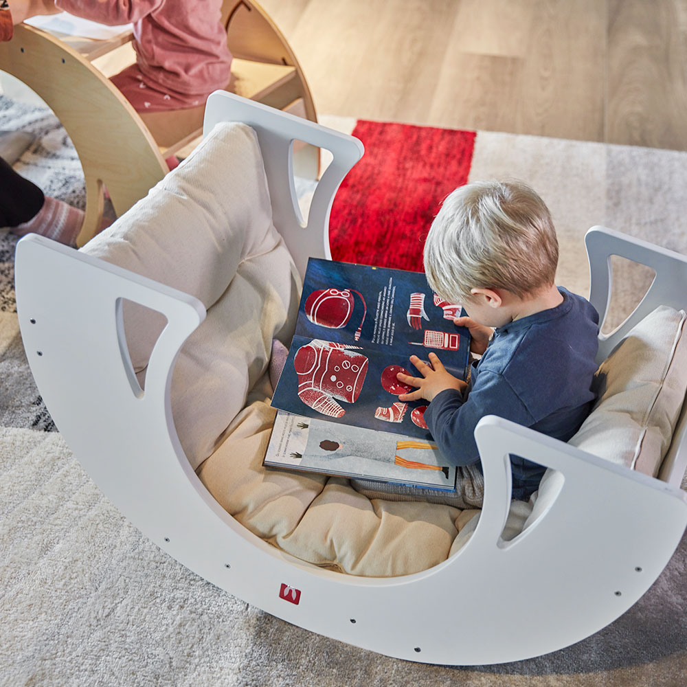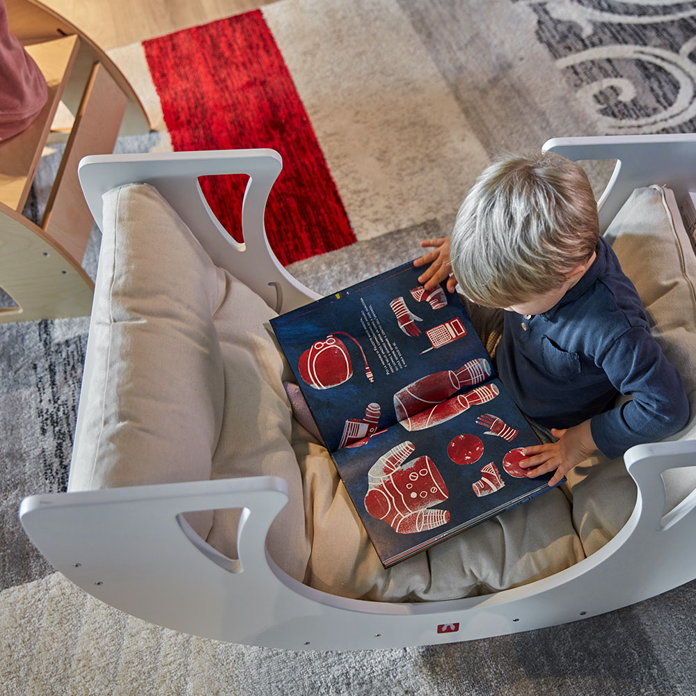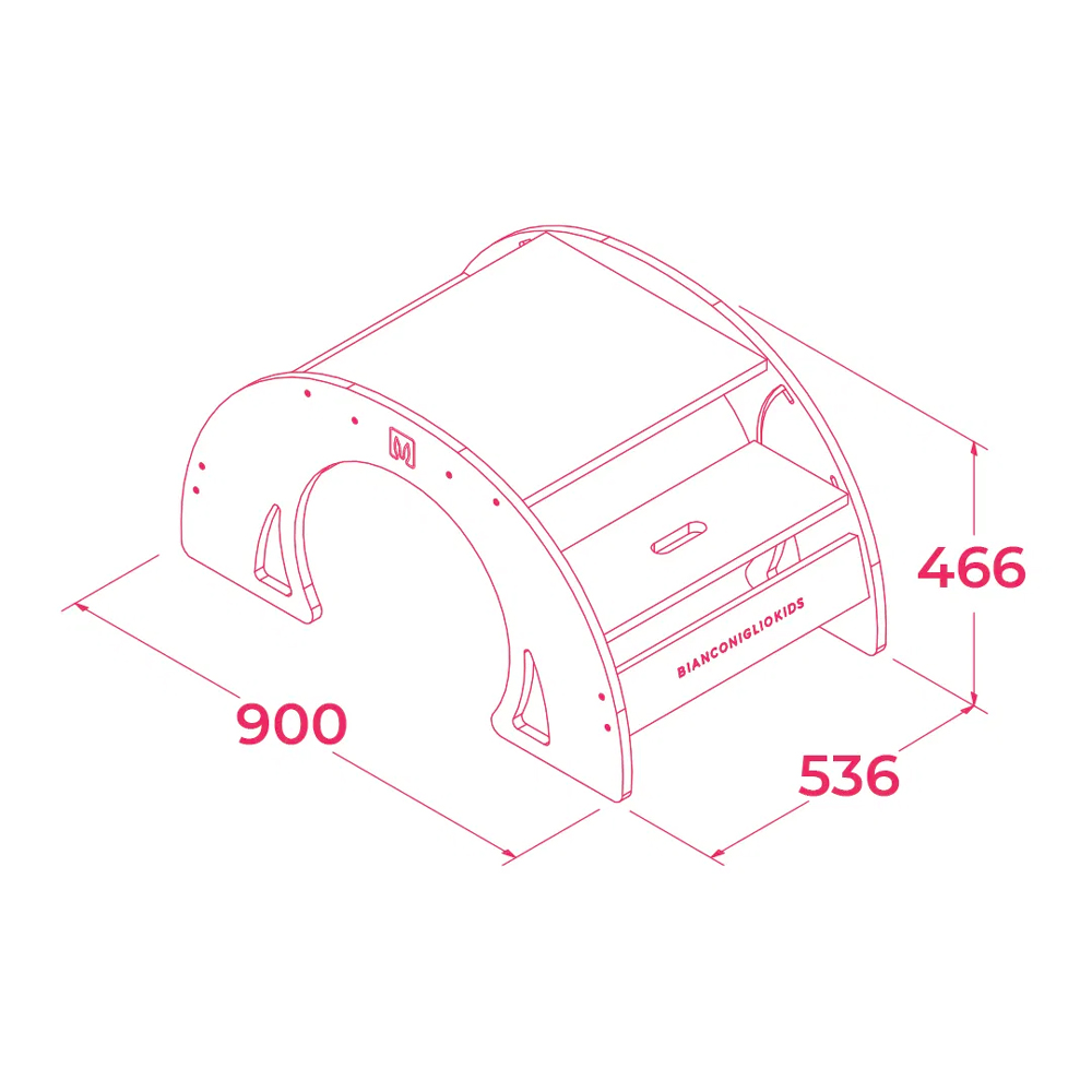 Grazie alle 5 configurazioni (rocker board, tunnel, ponte pikler, tavolino e culla ) DONDO regala tanto divertimento e la possibilità di prendere confidenza con nuove attività motorie e di equilibrio.