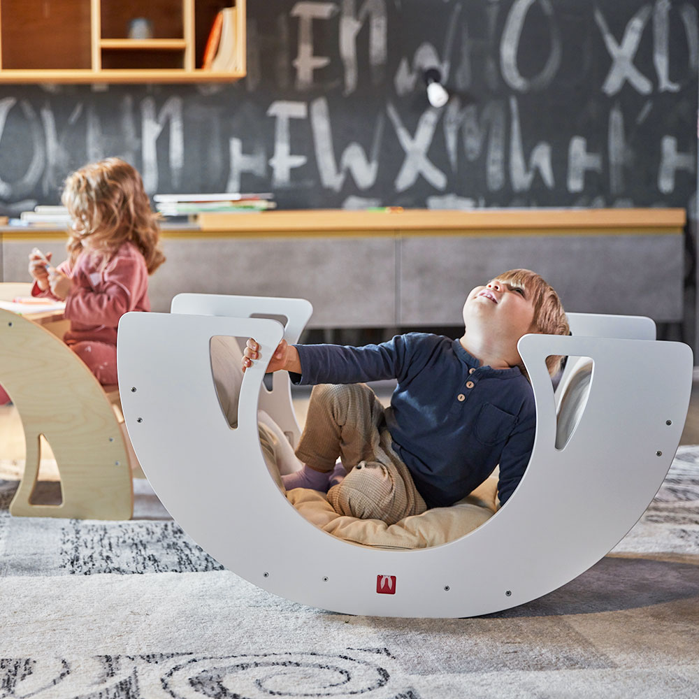 Da studi approfonditi delle pedagogia Montessori e Pikler nasce la rocker board DONDO, ideata appositamente per lo sviluppo psicofisico dei bambini. Grazie al design esclusivo di Bianconiglio Kids, DONDO stimola le capacità di propiocezione (percezione di sé), l’allenamento muscolare e l’apprendimento nelle prime fasi di età.
