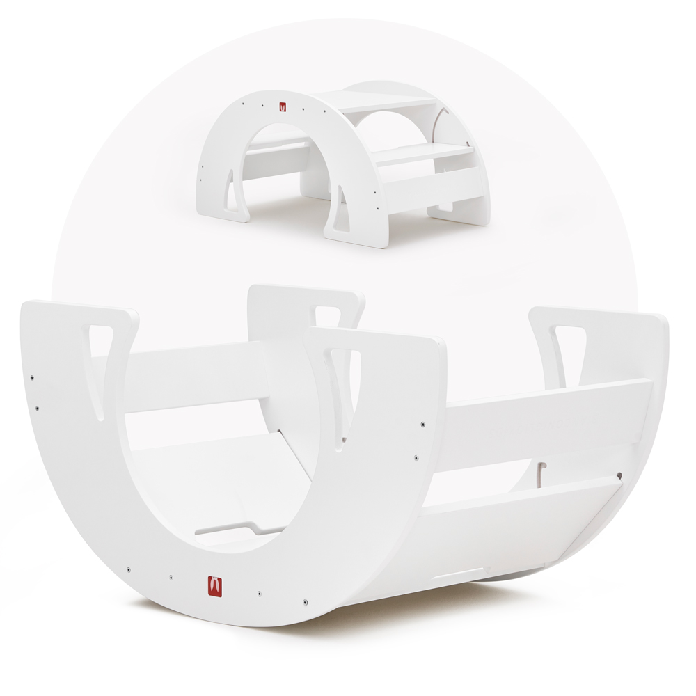 Grazie alle 5 configurazioni (rocker board, tunnel, ponte pikler, tavolino e culla ) DONDO regala tanto divertimento e la possibilità di prendere confidenza con nuove attività motorie e di equilibrio.